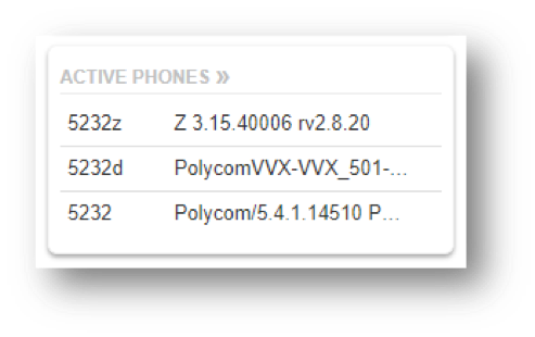 The Active Phone widget shows the active phones currently registered to your account that you can send and receive calls to and from. If you do not see a device listed there that should be, that means the device is not configured for your account or the device is currently unregistered. Contact your Administrator to add and configure your phone.