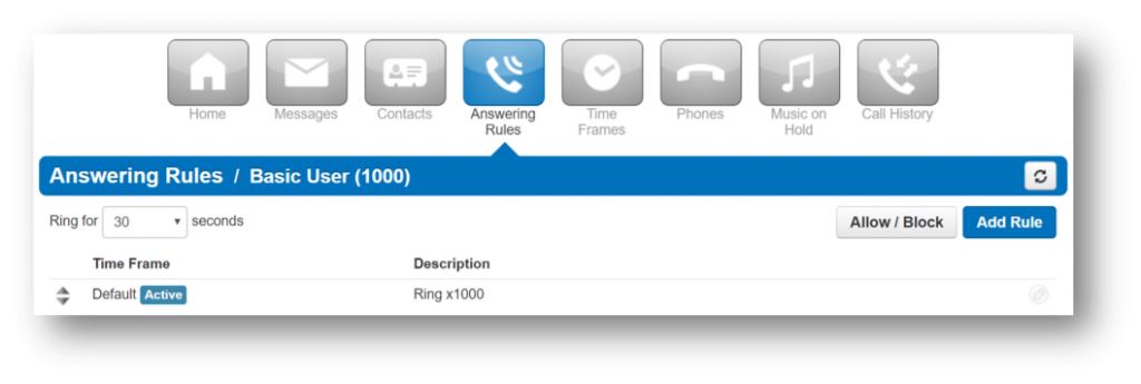 The Answering Rules icon will take you to your Answering Rules center. Answering Rules are how you control what devices ring, how long those devices ring for when receiving a call. It is also where you can configure what to do with a call that goes unanswered.