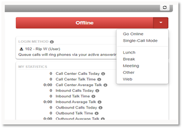 Note that custom statuses are defined as a period of time when the agent is “offline”. These are periods of time when the agent is not available to take calls, such as “appointment” or “bathroom”. These custom statuses are shared by all agents in the domain/organization and are limited to 8.