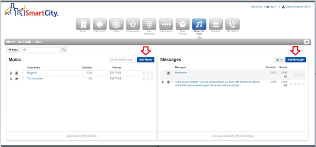 Previously in the “Settings” modal, randomize music and time between messages is now available in both panels on the Music on Hold page.