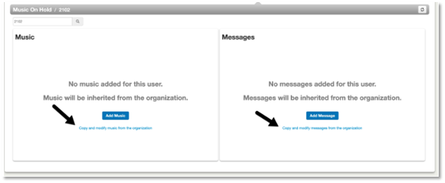 If a user or call queue decides to copy music and/or messages from the organization, these become “static”. While a user’s UI is empty, they are dynamically inheriting their organization’s defaults.