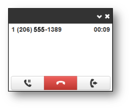 An Active Call window will appear that shows the Caller ID and call time. The three controls at the bottom of the window let you hold, hang up, or transfer the call. If you select transfer, a field appears for entering the extension of the recipient. If you prefix the recipient’s extension number with 03, the call goes straight to voicemail.