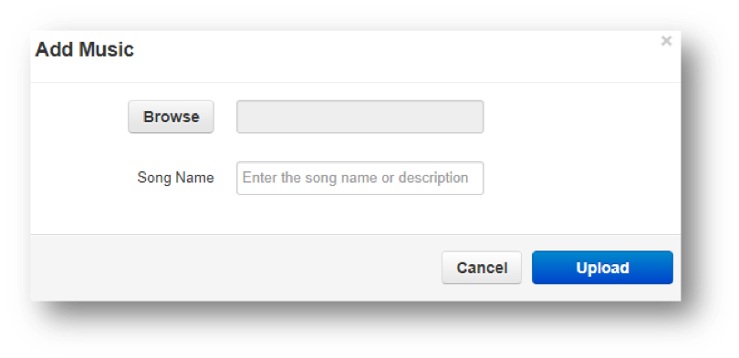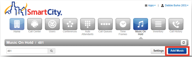 The Add Music button allows you to upload a .mp3 or .wav file format and name the Music on Hold file.
