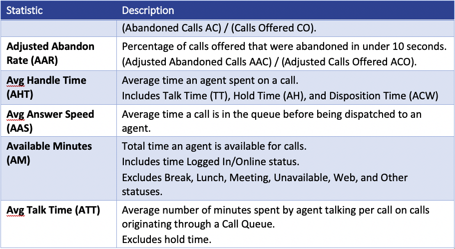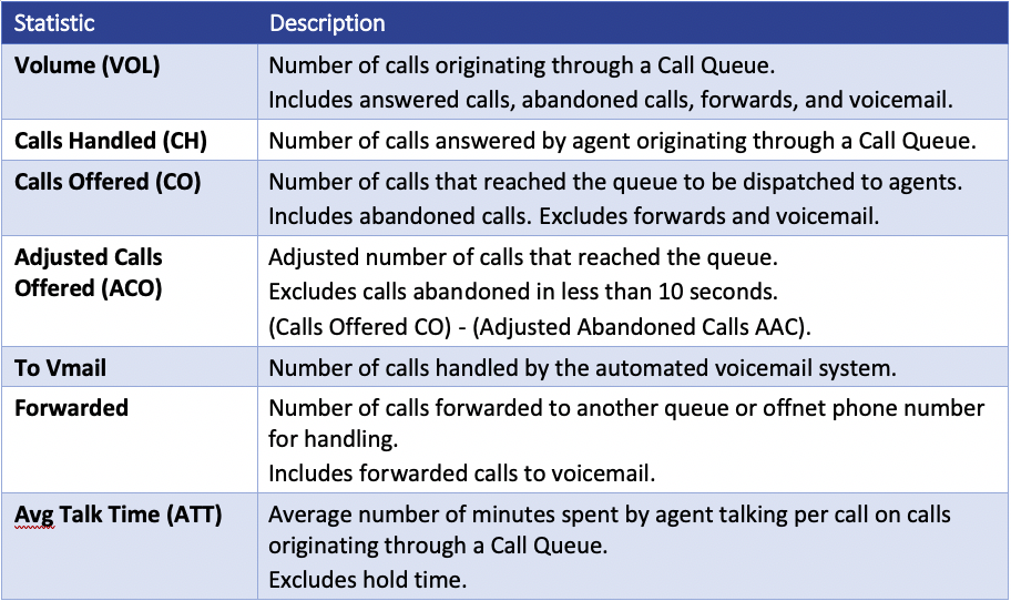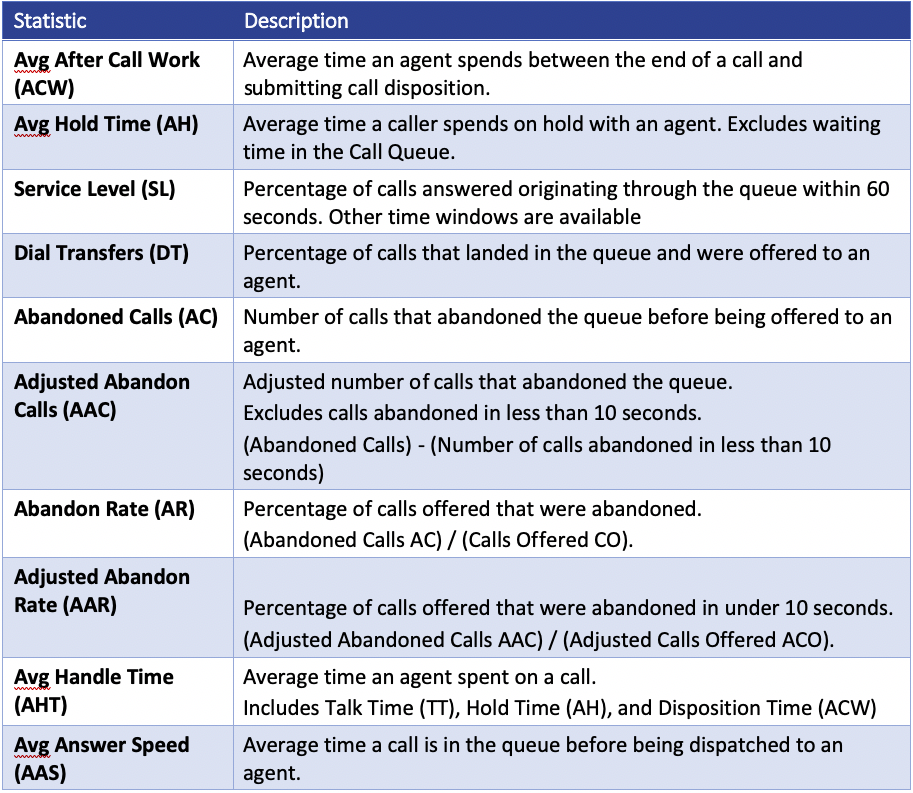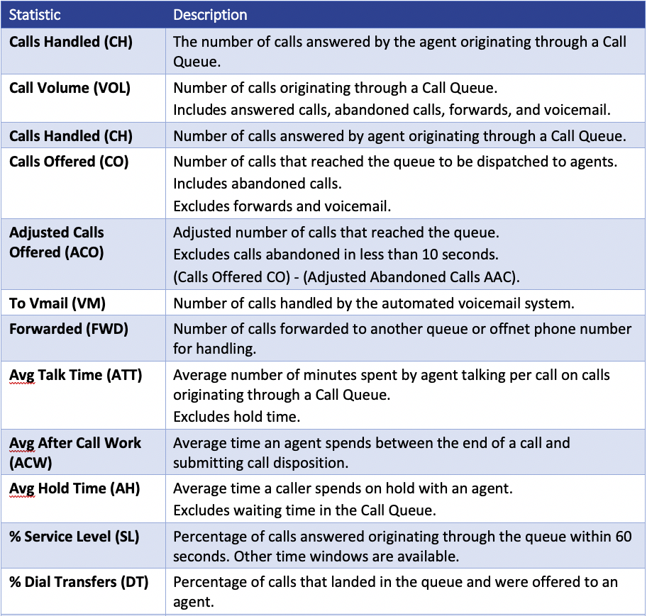 The Queue Stats report allows supervisors to view specific attributes on a queue-by-queue basis based on user-configurable attributes.
