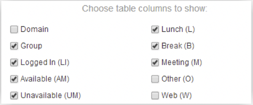 The Agent Availability report shows the availability of agents in the domain or in a department within a domain. You choose the values that are to be graphed from the following options: