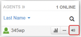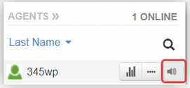 - In the AGENTS >> section of the Call Center Supervisor dashboard, hover your mouse over the desired call agent’s name, and then click the Speaker icon next to the agent’s extension.