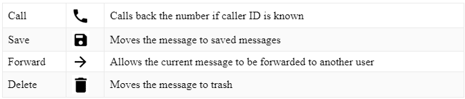 3. Click play to begin or pause playback. When a message is playing, this becomes a pause button. The following options are available: